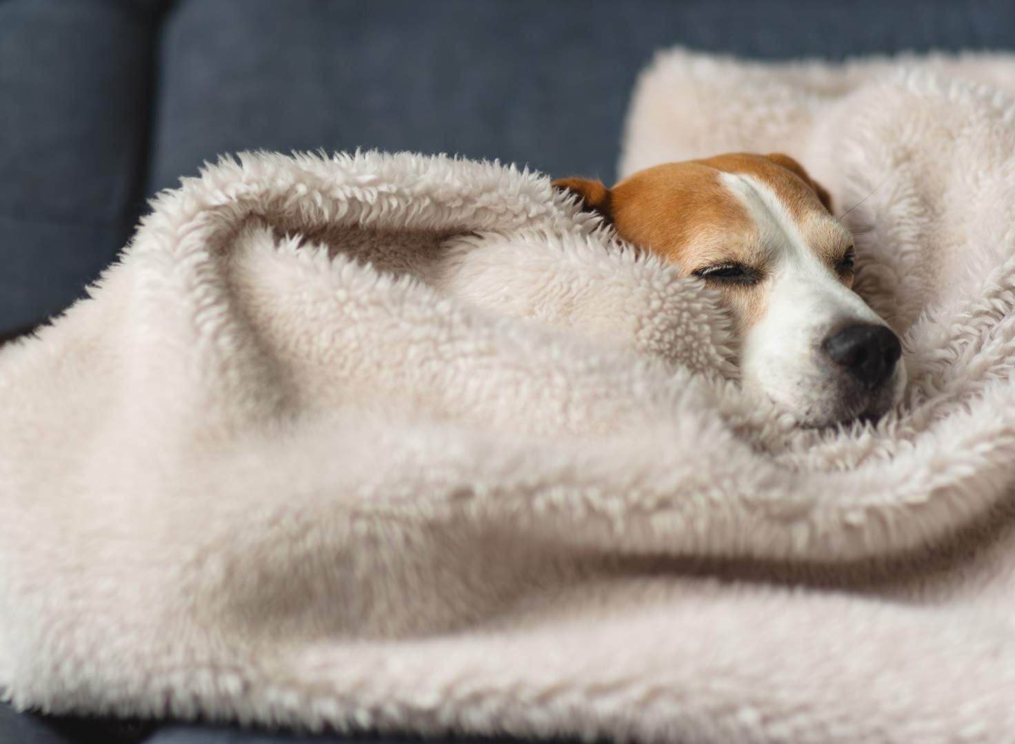 Your dog curls tightly into a ball or tucks their tail close.